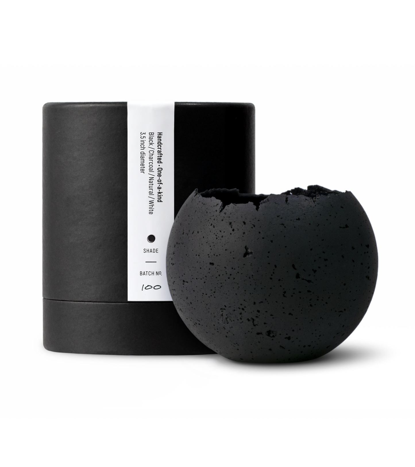 A one-of-a-kind, hand-crafted, concrete vessel that evokes a deep sense of awareness, forming a distinct impression in the living space. Each is a design object which fuses rawness and refinement, its pitted texture and fragmented sphere combining shades of high-modernism with a profound respect for organic texture and shape.